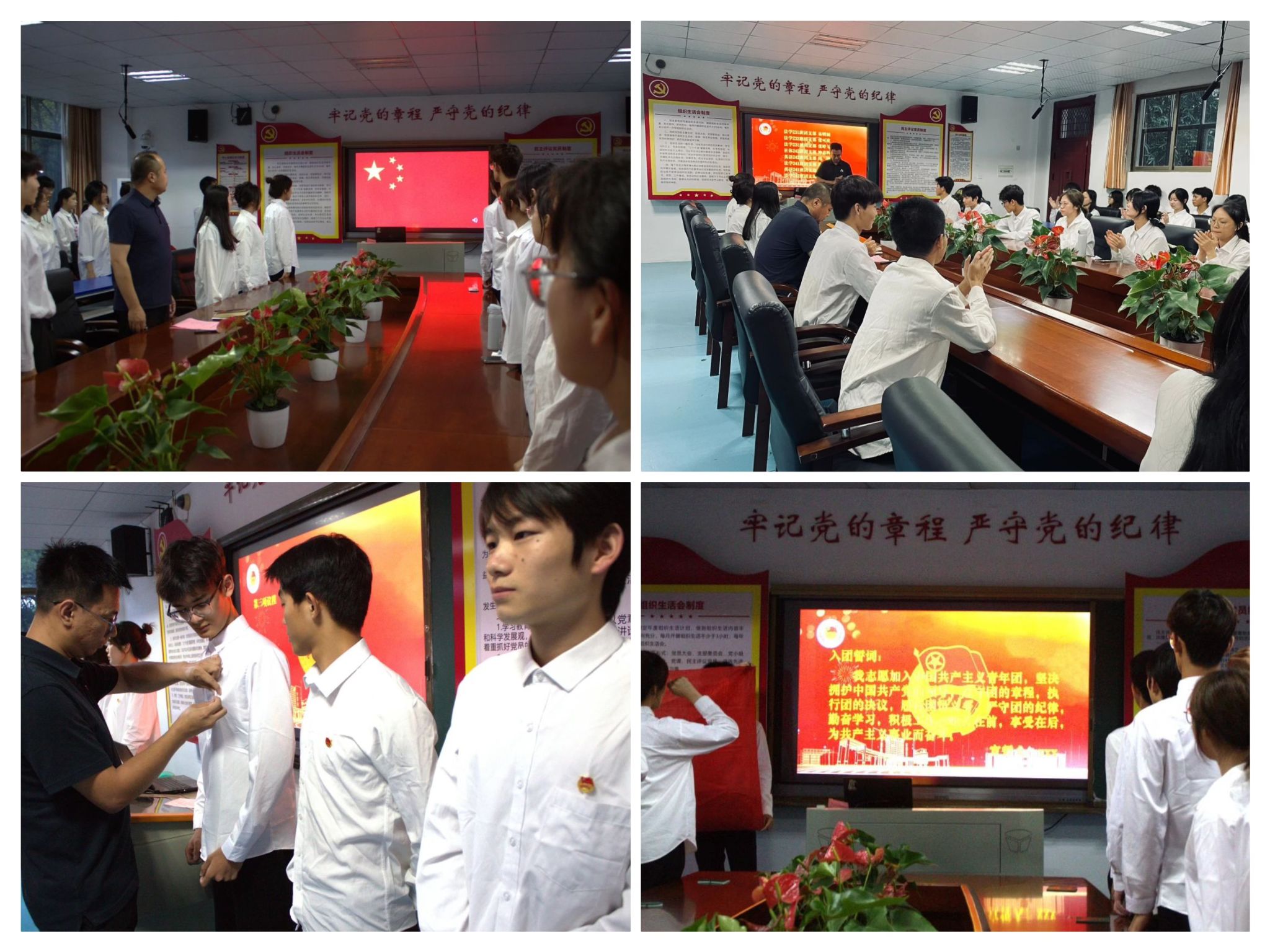 入团仪式在庄严的国歌声中拉开帷幕,全体参会人员肃穆而立,共唱国歌,激昂的旋律回荡在现场,点燃了每一位团员心中的爱国热情。王金鉴宣读新团员名单,新发展的团员们带着自豪与憧憬,迎来了他们的荣耀时刻。现场老师与优秀团员代表为新团员颁发团员证、佩戴团徽,一枚枚团徽在胸前闪耀,那是责任与使命的象征。在鲜艳的团旗下,新团员们举起右手,庄严宣誓。“我志愿加入中国共产主义青年团……”誓言声声入耳,字字入心,他们以青春之名,许下坚定承诺,立志成为有理想、敢担当、能吃苦、肯奋斗的新时代好青年。