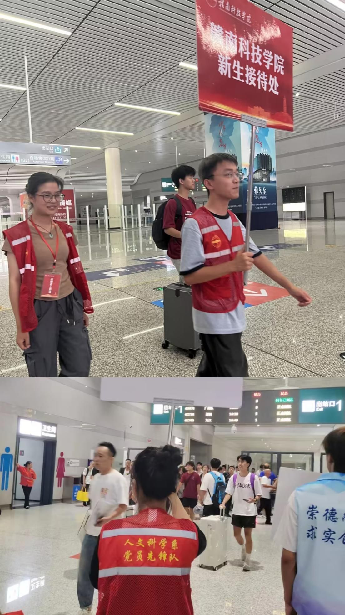 本网讯:为深入贯彻党的二十届三中全会精神,充分发挥党员的先锋模范作用,增强新生的幸福感和归属感,9月5日至6日,yl6809永利YL集团本科生第一、第二党支部分别在赣州西站、赣州黄金国际机场开展一站式迎新志愿服务活动,通过细致周到的迎新服务,帮助他们顺利开启大学美好生活。