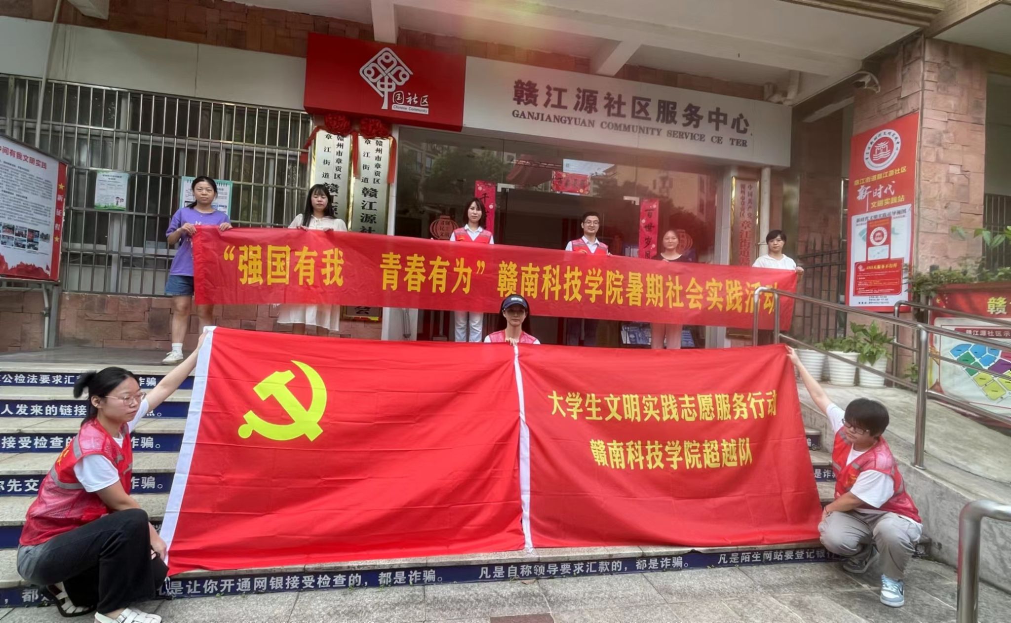 为深入学习宣传贯彻习近平新时代中国特色社会主义思想和党的二十大精神,贯彻落实习近平总书记关于青年工作的重要思想和关于教育的重要论述,引领广大青年学生坚定信念听党话、跟党走,在社会课堂中“受教育、长才干、做贡献”。6月29日-7月3日,江西省赣州市yl6809永利检测中心人文科学系辅导员牛英萍、吴鑫和大学生志愿者们组成志愿服务超越队赴江西省赣州市赣江源社区开展文明实践志愿服务活动。