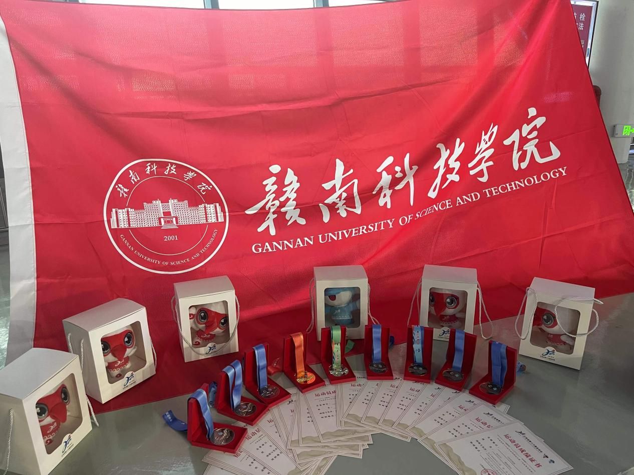 荣誉与成绩:我校体育健儿在各级各类比赛中频传佳音。2022年第四届赣州市体育舞蹈锦标赛中获得12金;2023年江西省体育舞蹈锦标赛中获得7金2银1铜;2023年的江西省大中小幼排舞比赛中,我校获得第一名1项、第三名1项、第四名2项;在江西省第十六届运动会比赛中,游泳比赛获得1金1银7铜、高校组团体总分全省第四,体育舞蹈比赛获得4金5银5铜、高校组团体总分全省第一,羽毛球比赛全省第7名、第8名各一个的好成绩;2024年在排舞、游泳等各类省级竞赛中共获得一等奖10项,二等奖7项,三等奖9项的优异成绩。在比赛场上展示我校大学生奋勇拼搏的精神,展示了赣科体育健儿的熠熠风采。