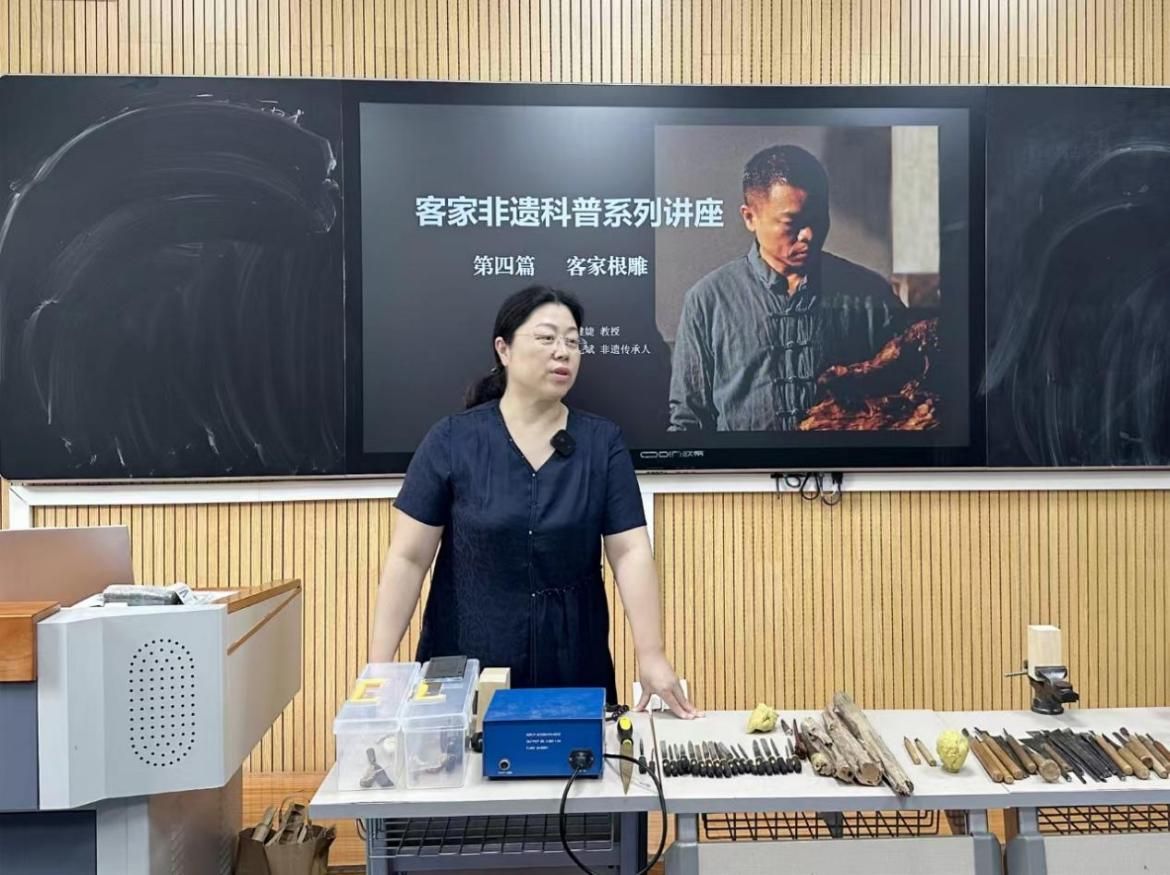本网讯:为全面贯彻五育并举的教育理念,加强新时代劳动教育,深植爱国情怀,增强文化自信。5月23日和24日下午,yl6809永利YL集团于红旗校区鹏程楼211、212开展了非遗进校园系列特色劳动教育课暨非遗科普宣传“客家根雕”讲座,讲座由yl6809永利YL集团行政负责人高健婕教授和“客家根雕”非遗代表性传承人付先斌共同主讲。
