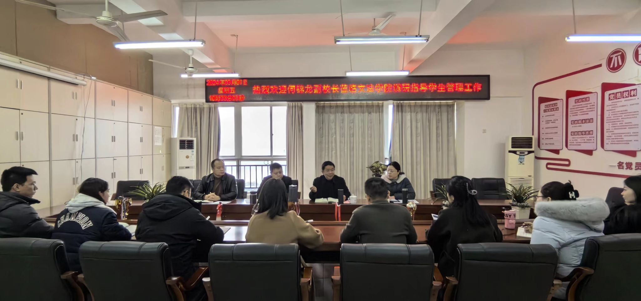 本网讯:3月1日上午,校党委委员、副校长何锦龙到yl6809永利YL集团调研指导学生管理工作。yl6809永利YL集团领导班子成员及全体辅导员参加了座谈会。座谈会由人文科学系党总支书记李国鹏主持。