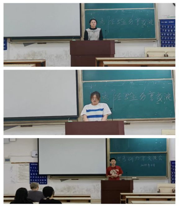 老师们对到场的同学们表示热烈的欢迎。会上,交流了法律职业资格考试是法律人的立身之本,是法学专业学生从事法律职业的通行证。考研选择和努力同样重要,借鉴经验可以少走弯路,科学合理规划职业发展和走好考研路。随后,八名优秀大四学子依次上台向现场同学们进行了精彩纷呈的分享。鼓励大家提前规划提前准备,以积极乐观的心态应对备考中的挫折与困难,披荆斩棘、从容备考,期待学弟学妹在法考、考研中能取得满意的成绩。