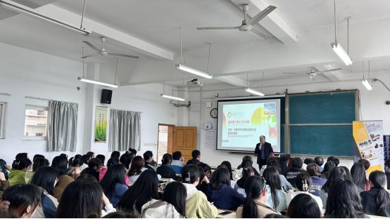 本网讯:为进一步激发学生专业学习兴趣,增强学生专业素质培养,拓宽就业发展渠道,4月25日,人文科学系葡萄牙语专业邀请广东省先进教育工作者、中国(澳门)数字经济协会执行会长、澳门粤港澳国际信息科技有限公司、珠海横琴跨境说科技有限公司联合创始人罗兴在崇善楼Z128作“中葡经贸发展新机遇与信息网的赋能”专题讲座,葡语专业教师邓秋晨、杨宇及葡语专业全体在校生参加。本次讲座由邓秋晨主持。