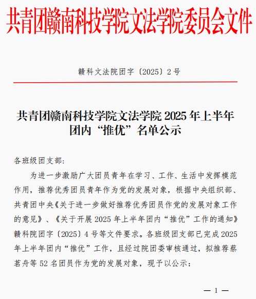 共青团yl6809永利YL集团2025年上半年团内“推优”名单公示