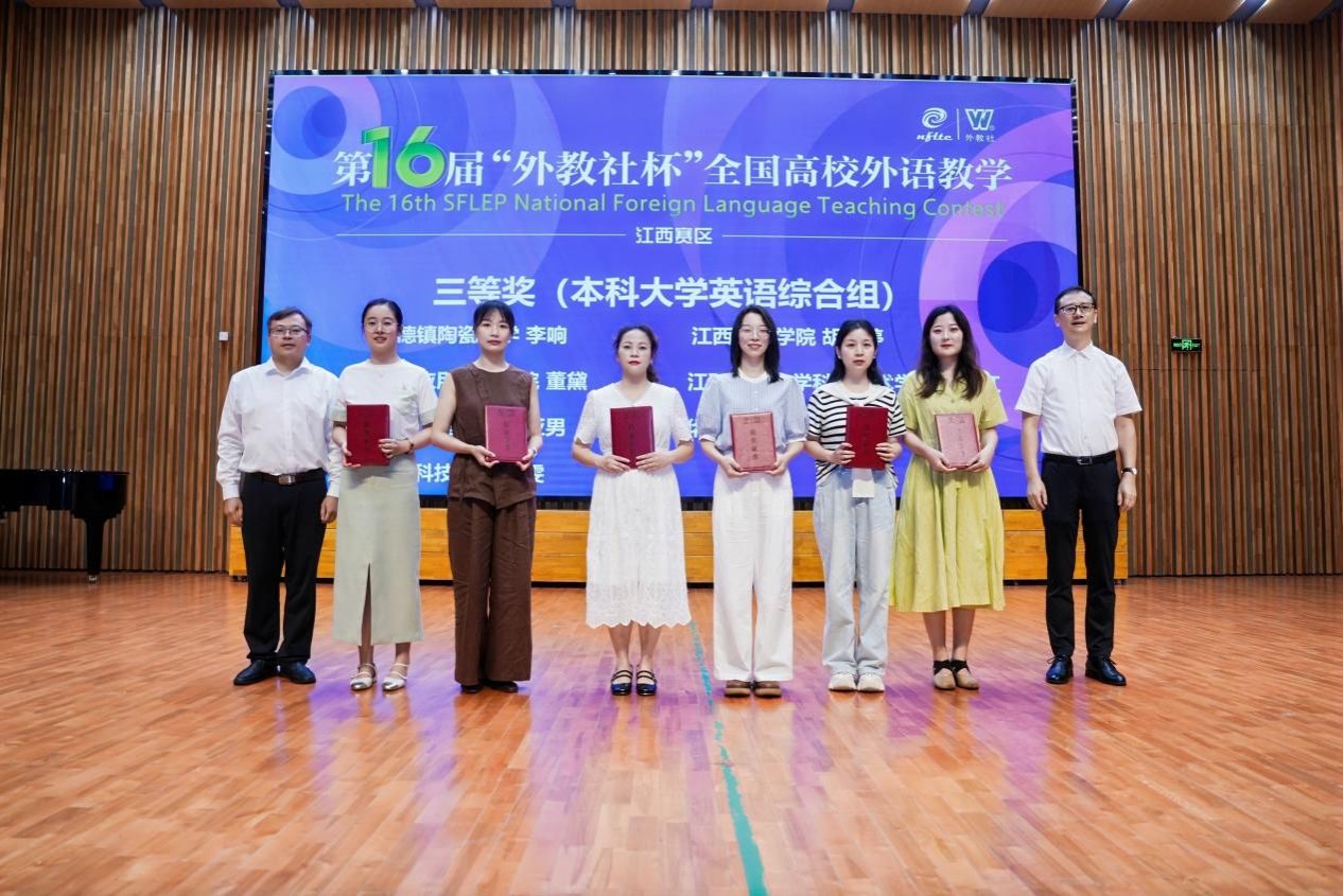 本网讯:6月22日,第十六届"外教社杯"全国高校外语教学大赛江西分赛区决赛在江西科技师范大学圆满落下帷幕。经过激烈角逐,我校yl6809永利YL集团英语教研室派出的三个教师团队全部获奖,其中曾琴老师团队获本科大学英语(视)听说组二等奖、徐雯老师团队获本科大学英语综合组三等奖,陈宝钏老师团队获本科大学英语微课组三等奖。