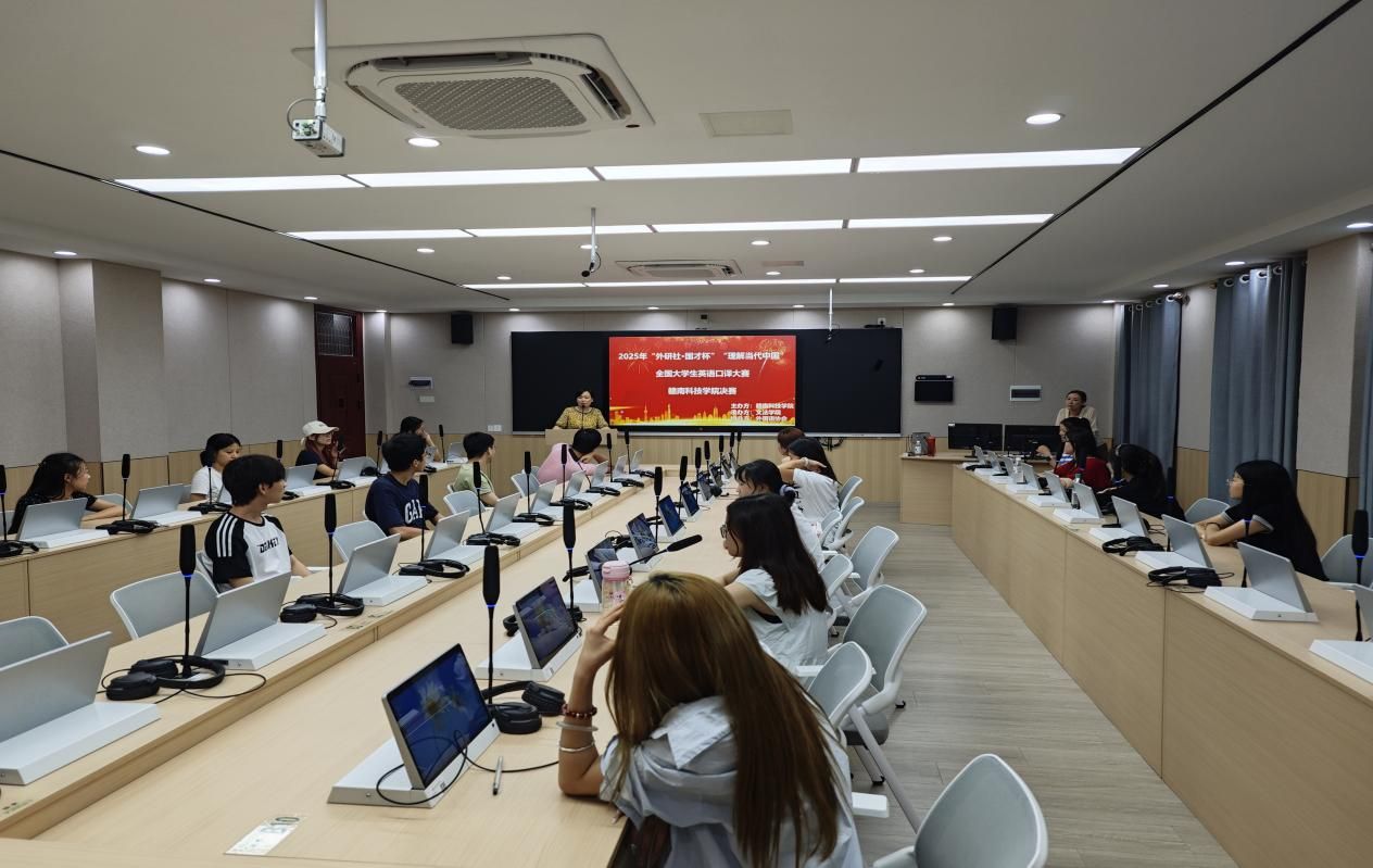 本网讯:9月26日,yl6809永利YL集团在智慧多功能同声传译实验室举办2025年“外研社·国才杯”“理解当代中国”全国英语口译大赛校级决赛。决赛由顾玲、范丽萍、郭磊磊、王盼四位老师担任决赛评委老师,共有40位选手从选拔赛中脱颖而出。