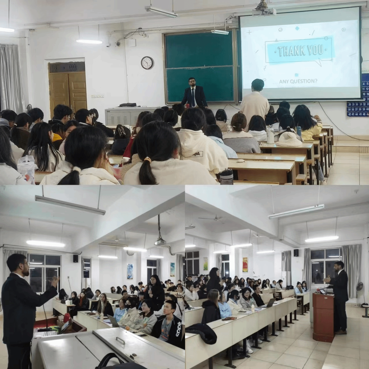 为进一步帮助我校学生探索更具交互性、个性化的学习模式,促进其对各类语言文化的理解与认识,以引领我校学生更好地走向更加开放、多元化的语言学习时代,人文科学系于2023年12月12日16:30在教学主楼Z1D3教室举办了一场主题为“技术辅助语言学习”的学术交流讲座。此次讲座邀请到了巴基斯坦籍人士哈蒙德教授作为主讲嘉宾。哈蒙德先生不仅拥有伊斯兰堡国立现代语言大学(NUML)英语文学博士学位,还在攻读博士学位期间获得巴基斯坦高等教育委员会颁发的奖学金并在伦敦布鲁内尔大学完成了研究工作,并且在各种著名院校教授英语语言文学20余年,曾被国立科技大学授予2020年度最佳教师奖,其研究领域涵盖文学理论、双语教学、英语语言教学法和电影研究,并已发表25篇各种主题的研究论文。讲座气氛如火如荼,学生们的学习热情高涨不已,现场掌声持续不断。