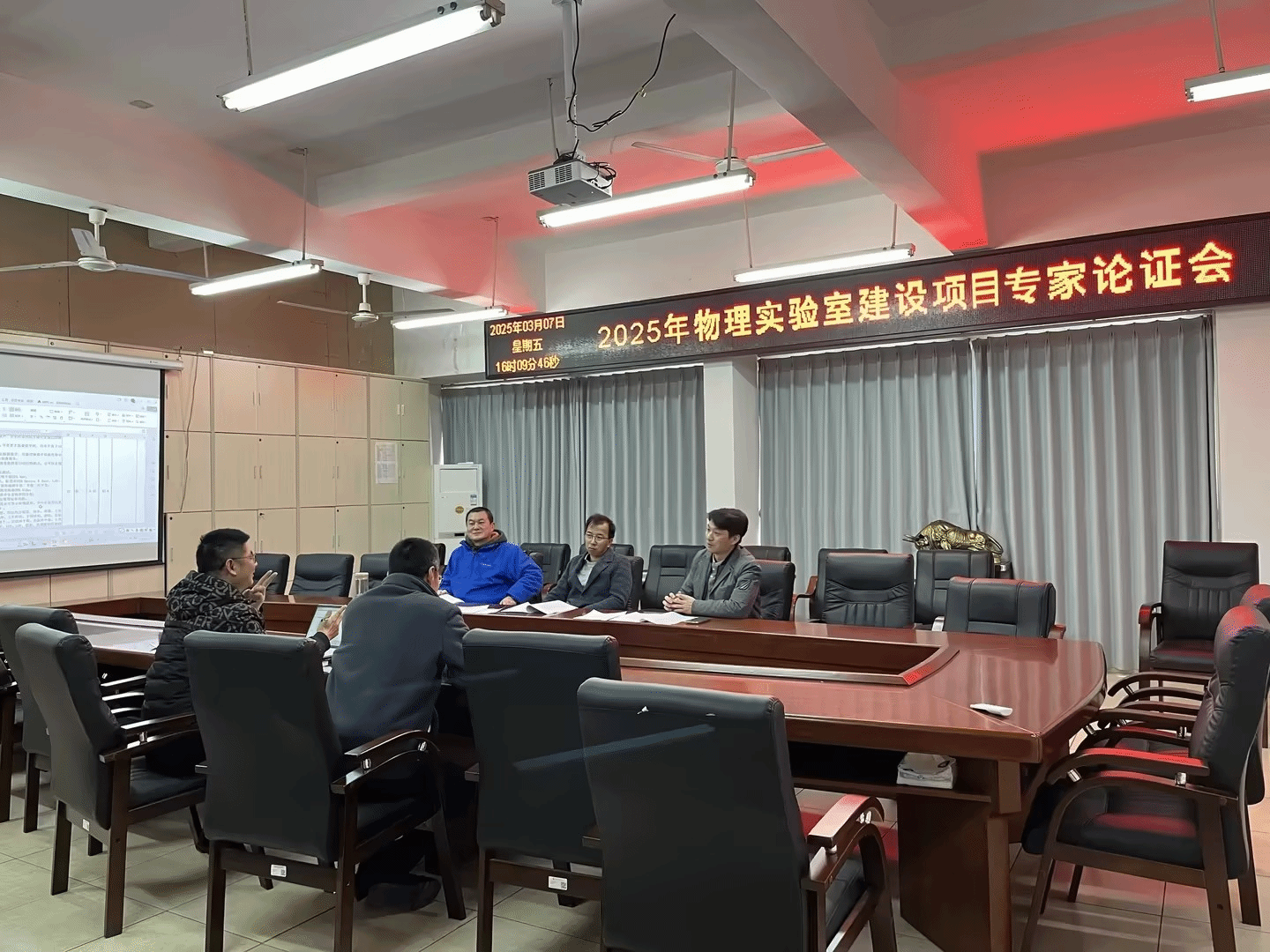 会上,项少辉和祝成波陈述了物理实验室建设项目的可行性论证报告,详细阐述了仪器设备购置的必要性和可行性。几位专家对建设项目进行了仔细分析和充分讨论,并提出了许多宝贵的意见和建议。