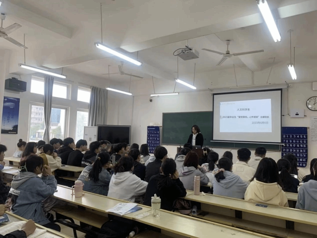 2023年6月6日,人文科学系在主教Z1D3举行了一场以“爱校荣校心怀感恩”为主题教育活动。本次活动旨在激发毕业生对母校的热爱和荣誉感,增强他们的归属感和责任感。本次会议参加人员主要有辅导员牛英萍以及23届优秀毕业生代表。