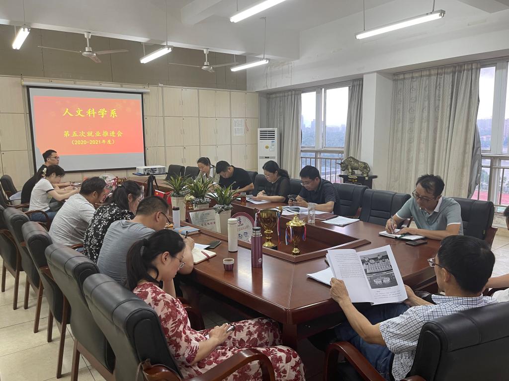 为持续推进我系2021届毕业生就业工作,5月28日人文科学系召开了2021年第五次就业工作推进会。系主任高健婕、党总支书记李国鹏、副主任何建军、邱志群、就业辅导员刘莉、毕业班辅导员邹丽、全体毕业班班主任以及各专业教研室老师参加了此次会议。会议由邱志群主持。