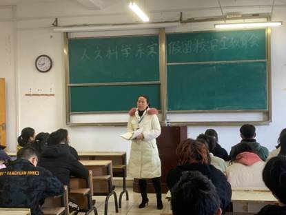 为进一步落实寒假留校学生的安全稳定工作,增强留校学生的安全防范意识,更好的为学生做好假期留校服务工作,人文科学系1月13日下午15时在主教Z102教室召开2020-2021学年寒假留校学生安全教育专题会。人文科学系副主任邱志群、辅导员牛英萍、辅导员郭豪以及申请留校学生出席本次会议。会议由郭豪主持。