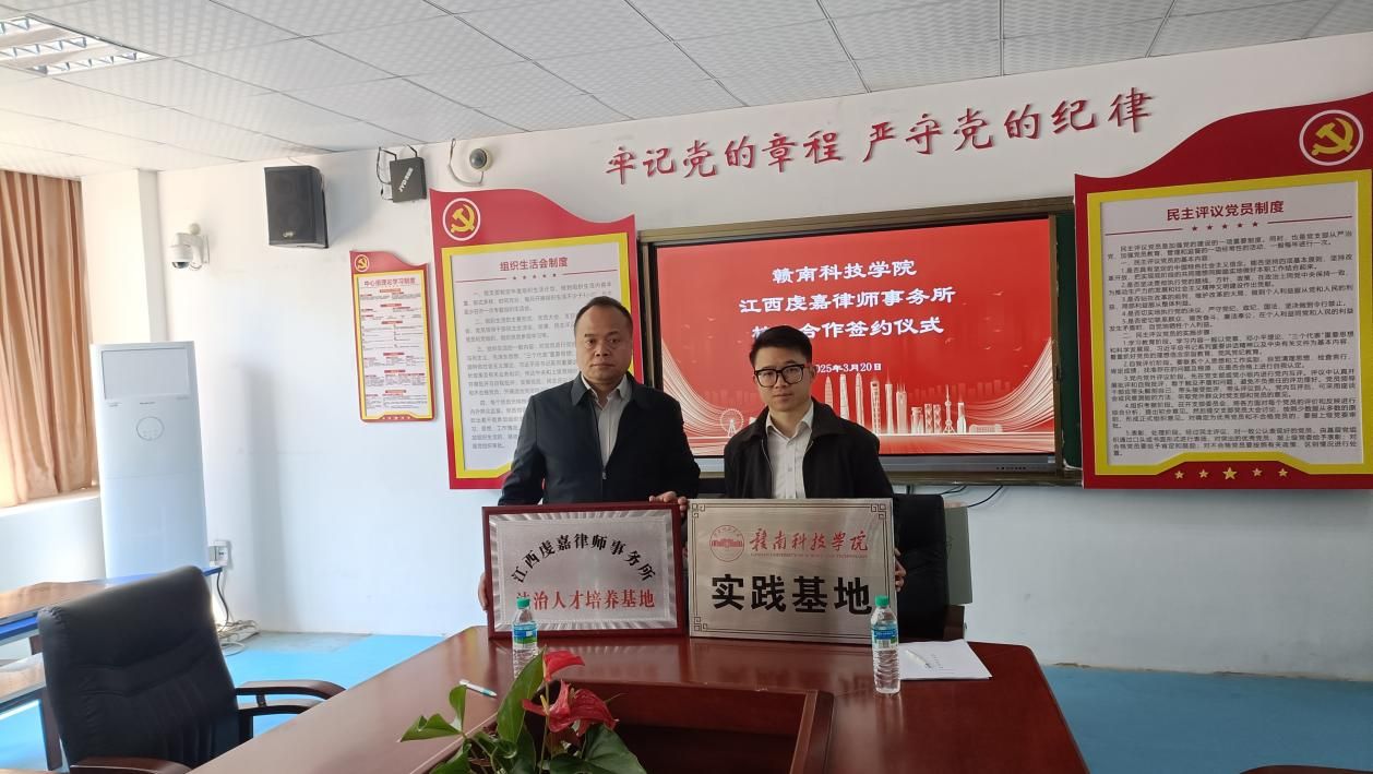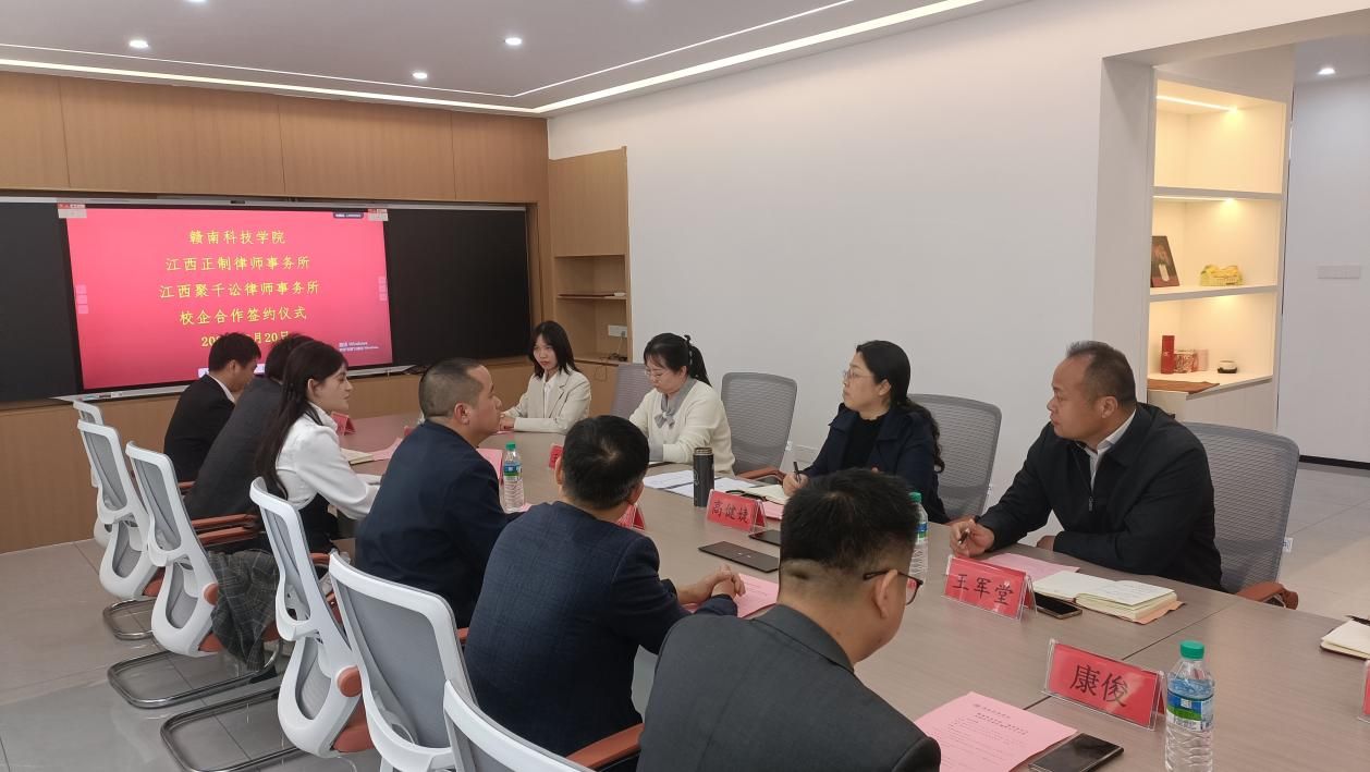yl6809永利YL集团党委委员、副院长高健婕和正制律所主任梁树宏代表双方签署《校企合作协议》,并共同为“江西正制律师事务所法治人才培养基地”及“yl6809永利检测中心实践教学基地”授牌,正制律所高佳福、康俊、魏天慜、黄佩、陈成等见证签约授牌。