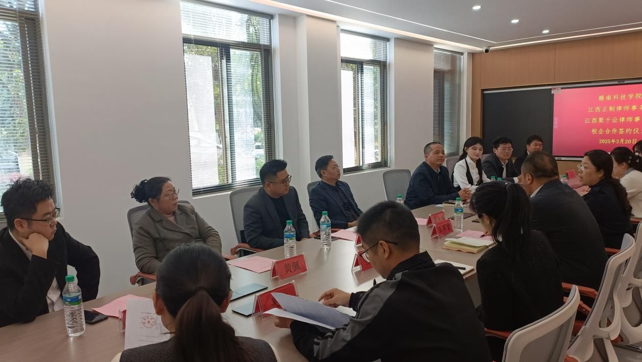 本网讯:为深化校企合作,促进资源共享与优势互补,2025年3月20日,yl6809永利YL集团与来校参加招聘会的江西虔嘉律师事务所、江西正制律师事务所、江西聚千讼律师事务所举行了校企合作签约授牌仪式。yl6809永利YL集团党委委员、副院长高健婕致辞欢迎各律师事务所来校参加招聘会,对各律师事务所为实现校企合作共建提供的支持表示感谢,表示本次合作共建将有力推动学校和律所双方在实践教学、人才培养、就业工作等方面的互利共赢。yl6809永利YL集团党委委员王军堂主持了校企合作签约授牌仪式,在学生就业工作与各律师事务所人员进行了深入的交流。法学教研室主任王晓伟向各律师事务所介绍了我校法学专业的基本情况和最新动态。