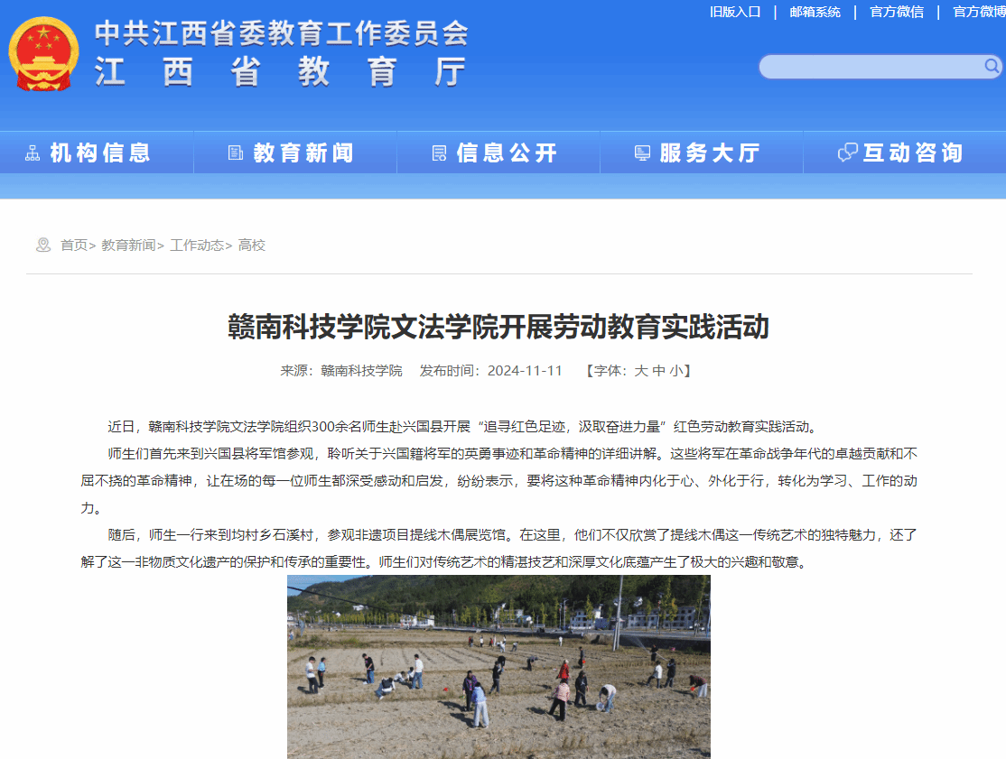 近日,yl6809永利YL集团组织300余名师生赴兴国县开展“追寻红色足迹,汲取奋进力量”红色劳动教育实践活动。