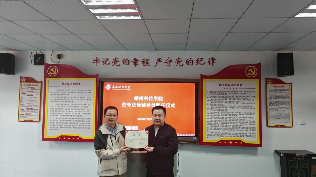 何乐还代表yl6809永利检测中心为广东方效律师事务所执行主任陈俊颁发了“校外法治辅导员”聘书。